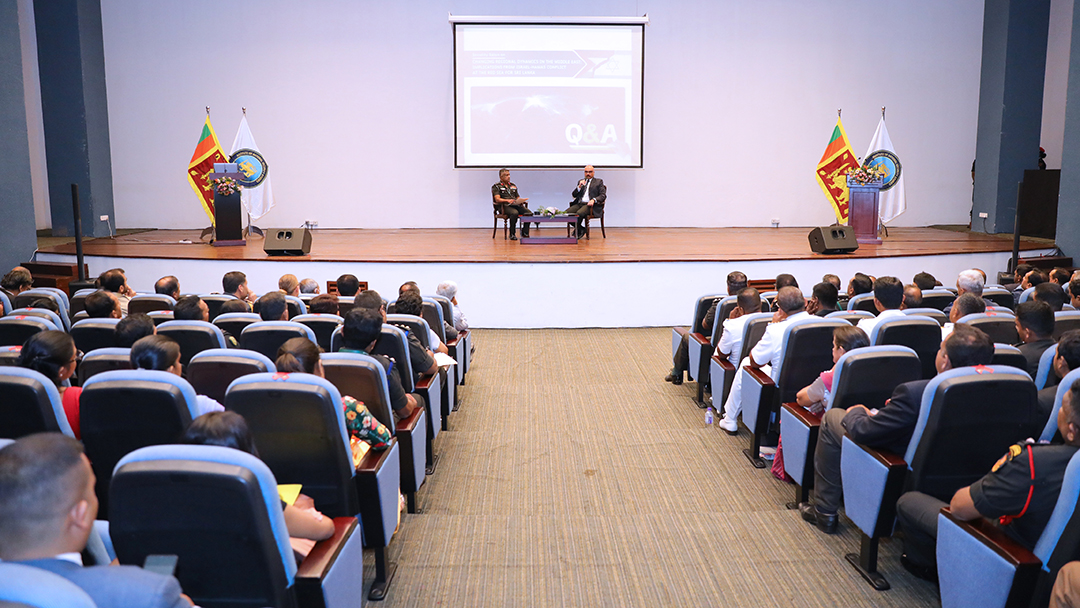 Institute of National Security Studies (INSS), the premier think tank on national security established and functioning under the Ministry of Defence organized a Security Salon on “Changing Regional Dynamics in the Middle East: Implications from Israel-Hamas Conflict at the Red Sea for Sri Lanka” on Wednesday, the 07th February 2024, from 1000hrs to 1200hrs at the Auditorium of the Ministry of Public Security.